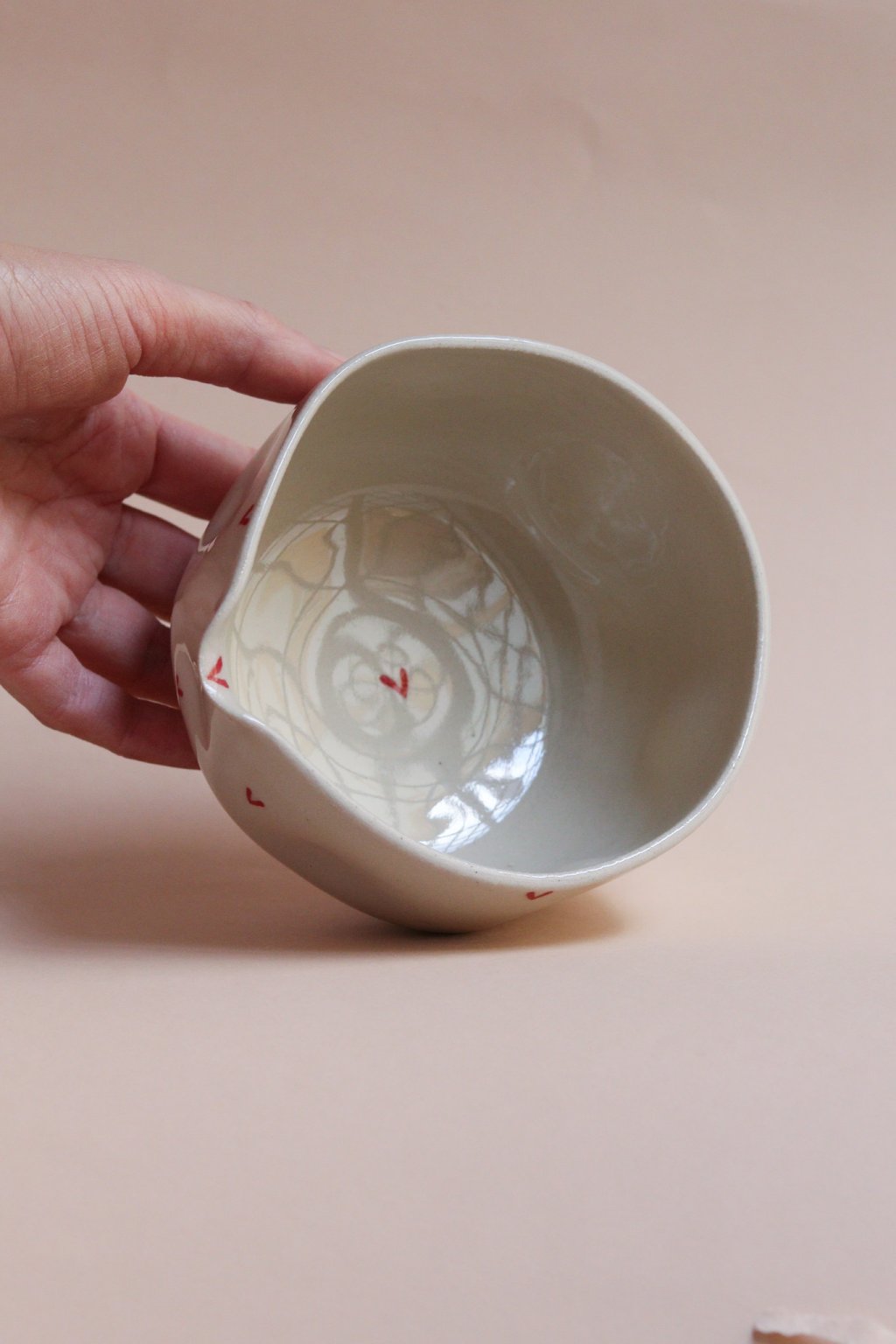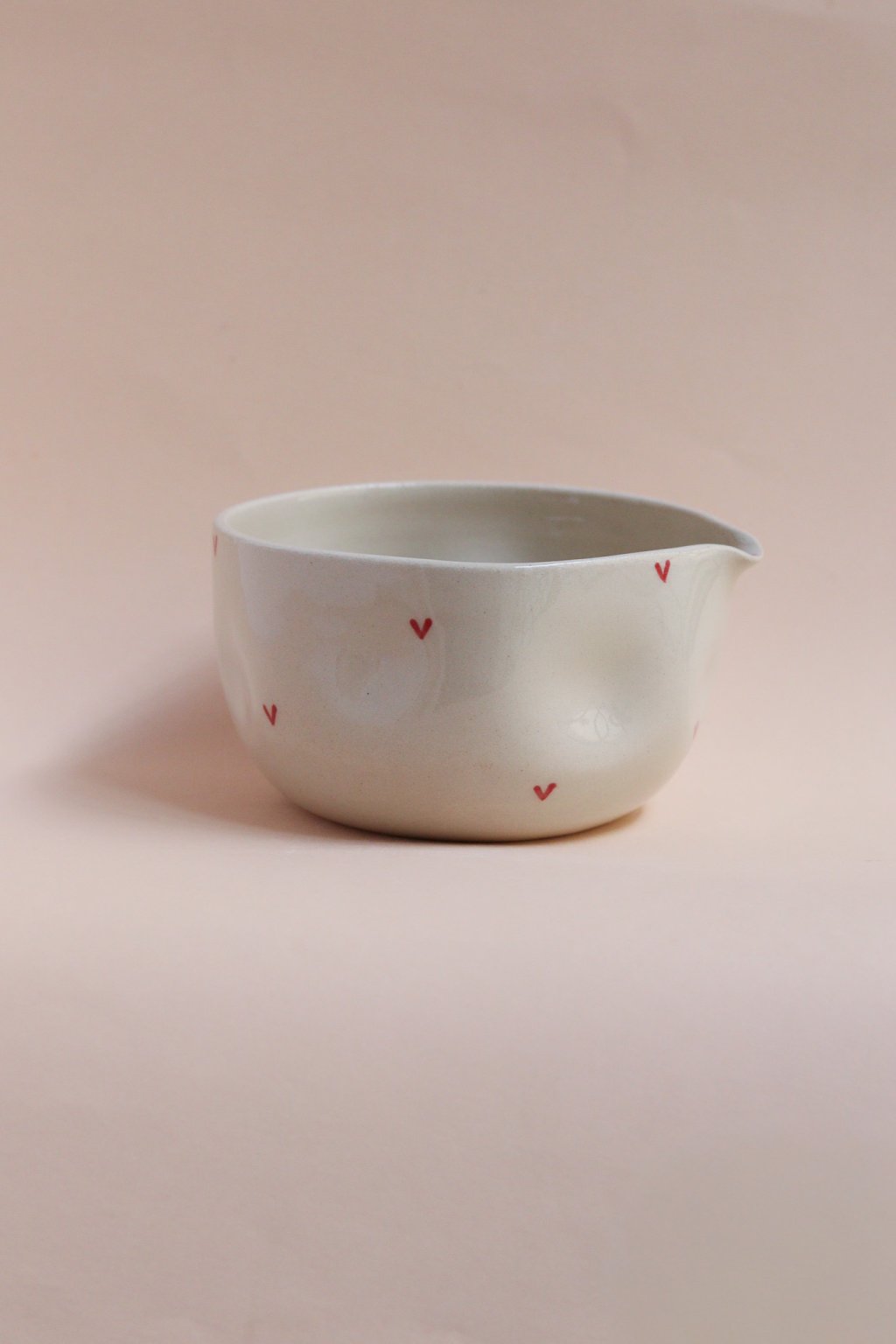 Chawan na matchu srdíčkatý béžový pomačkaný