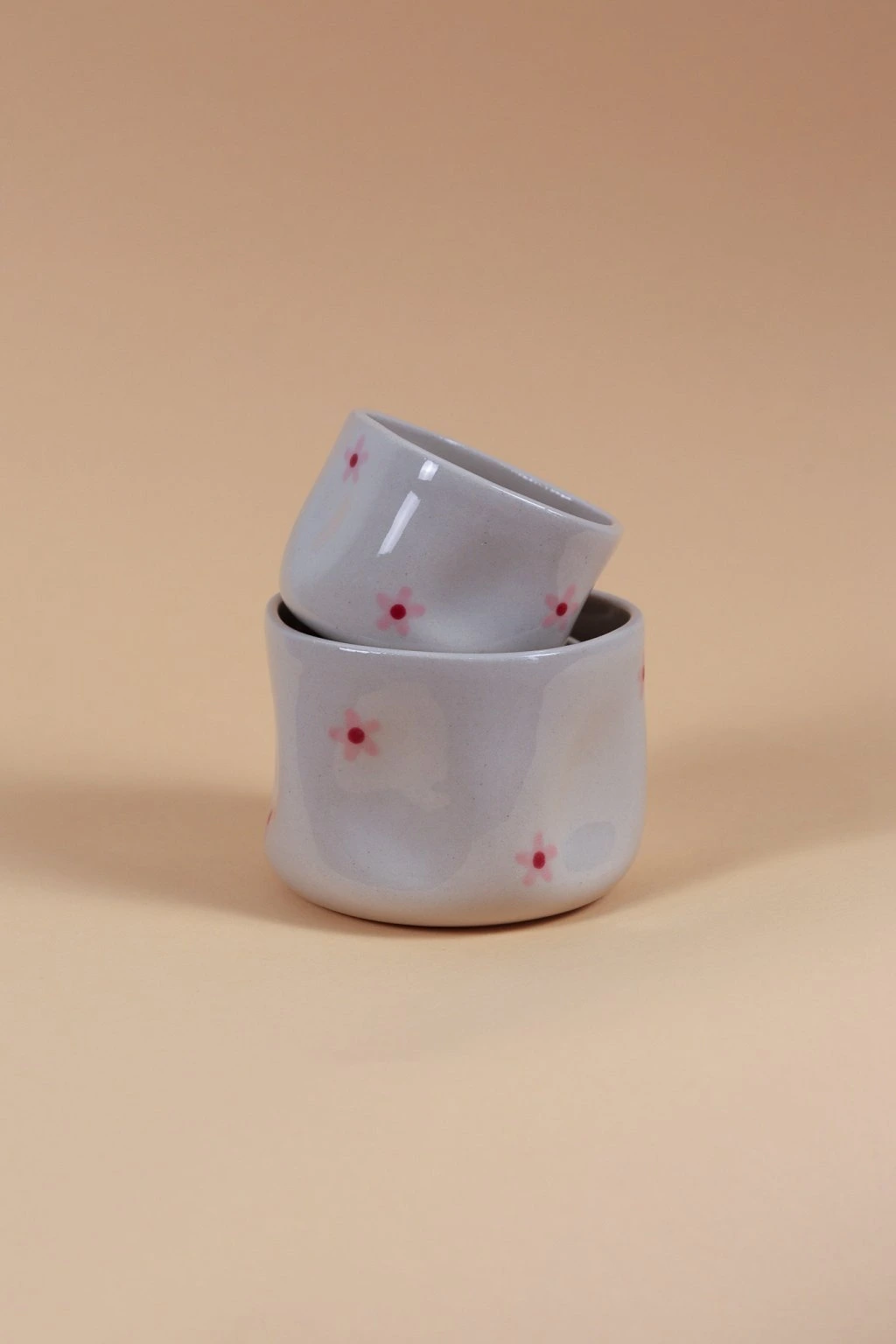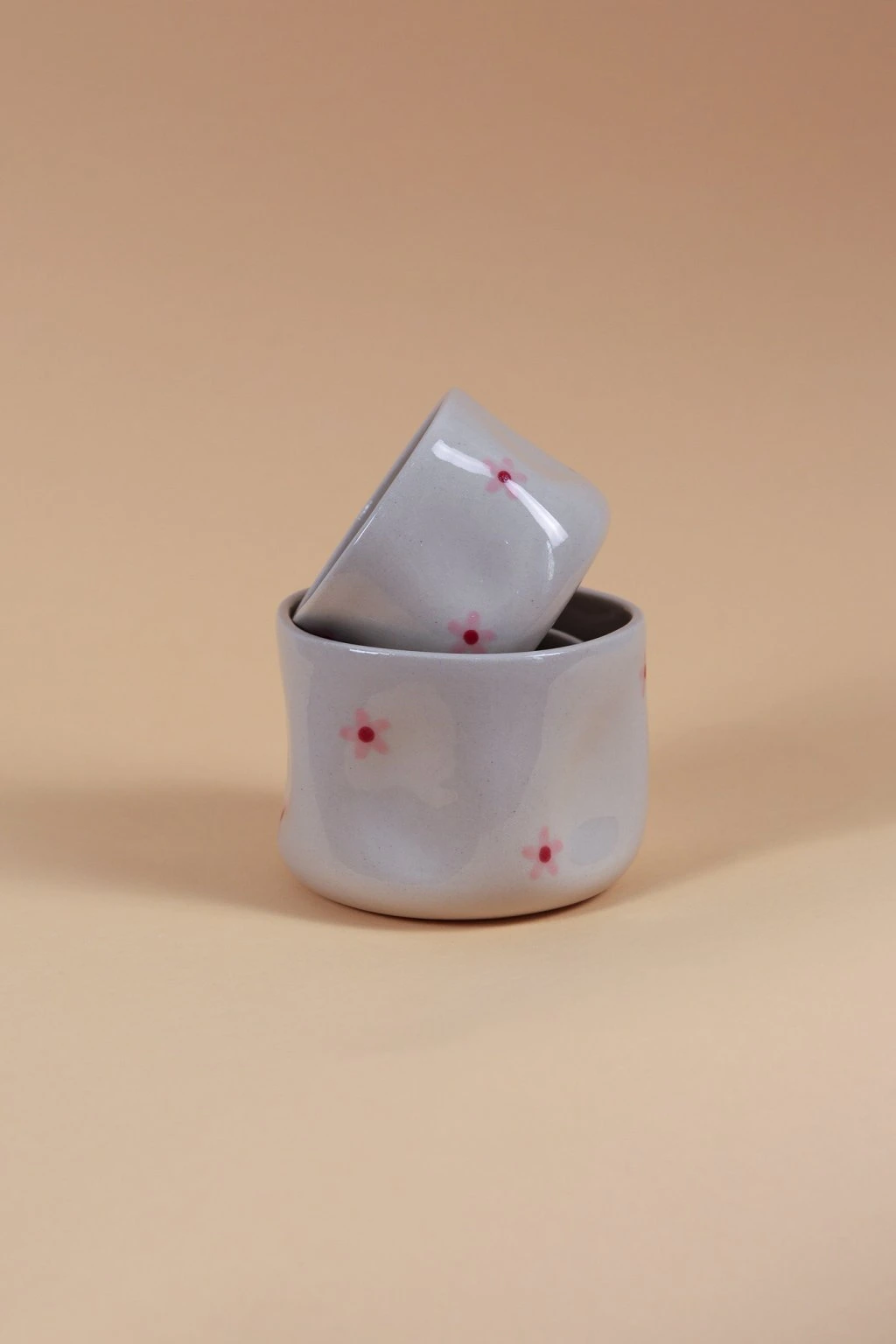 Kalíšek je vyrobený z béžové hlíny s jemným žiháním.