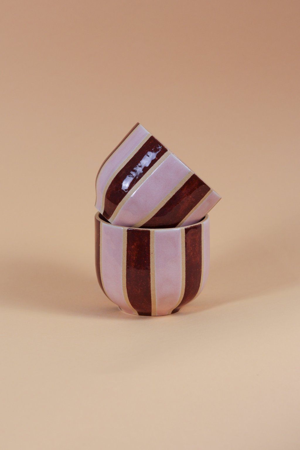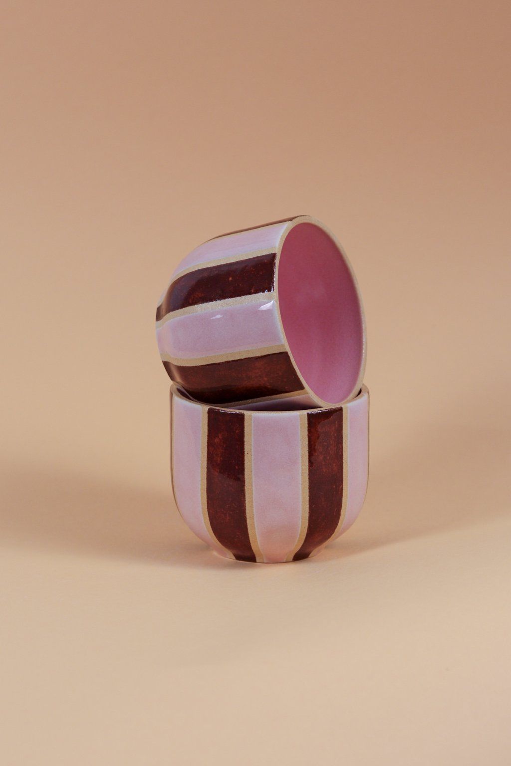 Kalíšek proužky hnědo růžová