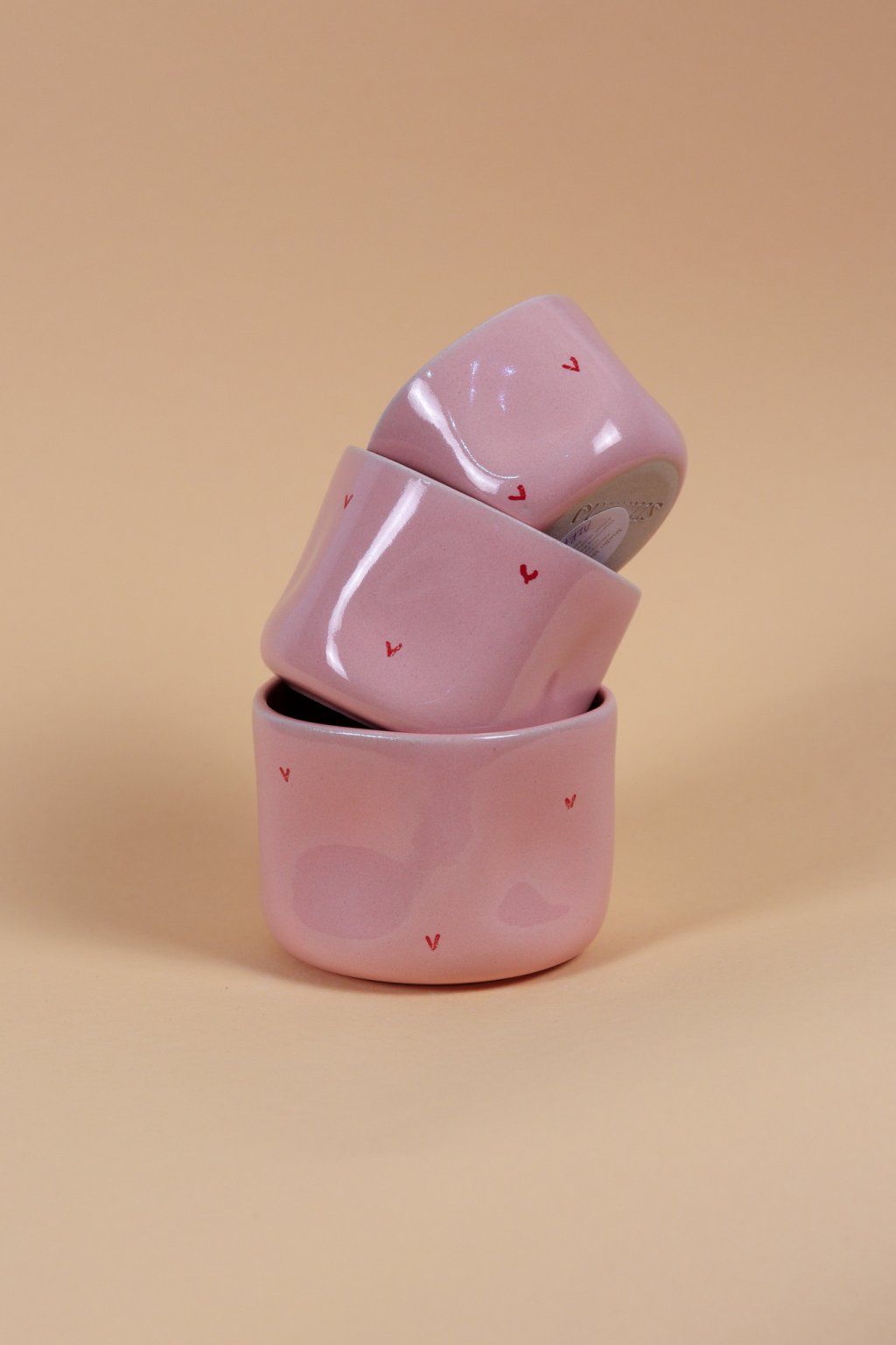 Kalíšek růžový s červenými srdíčky pomačkaný