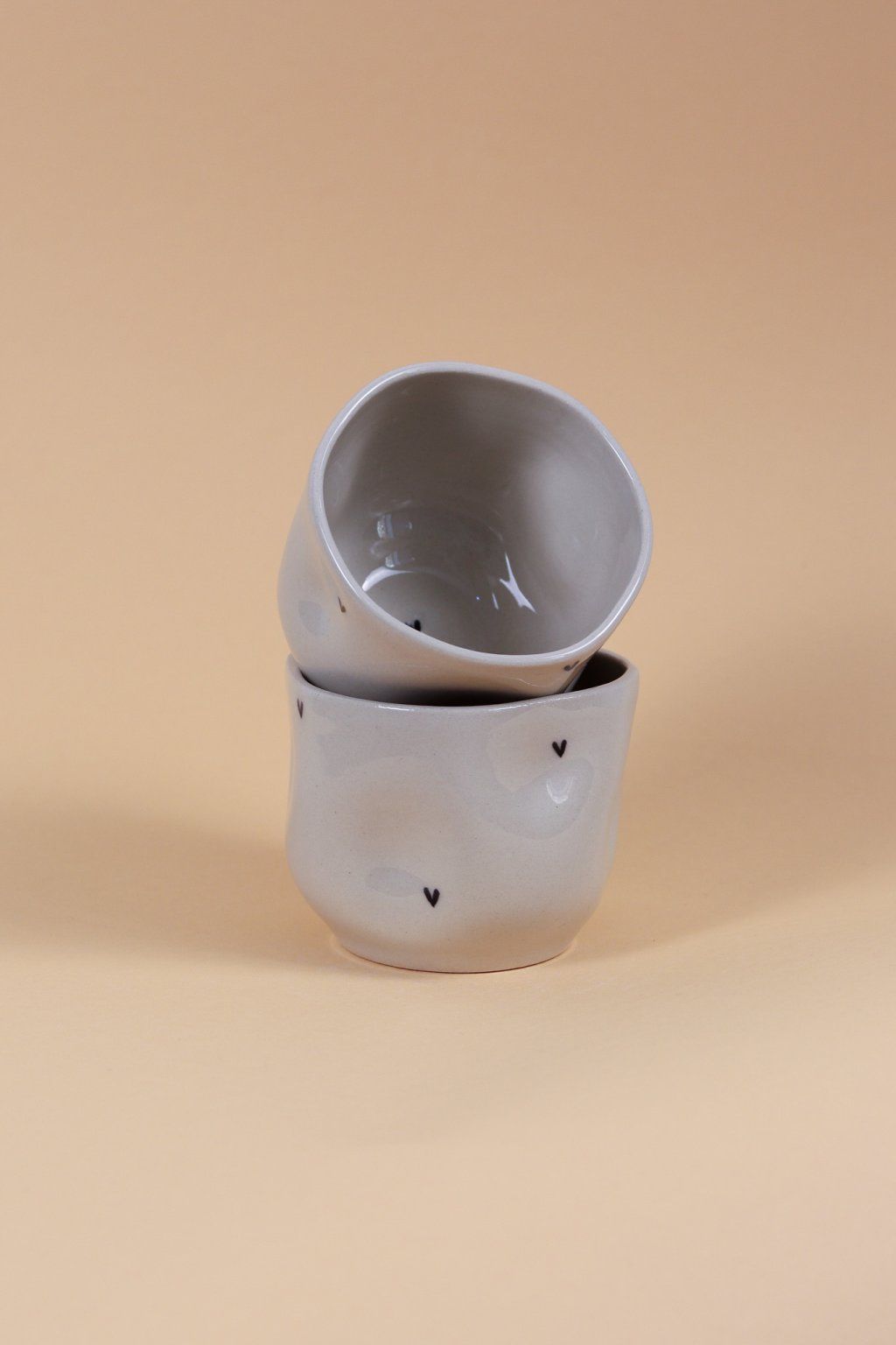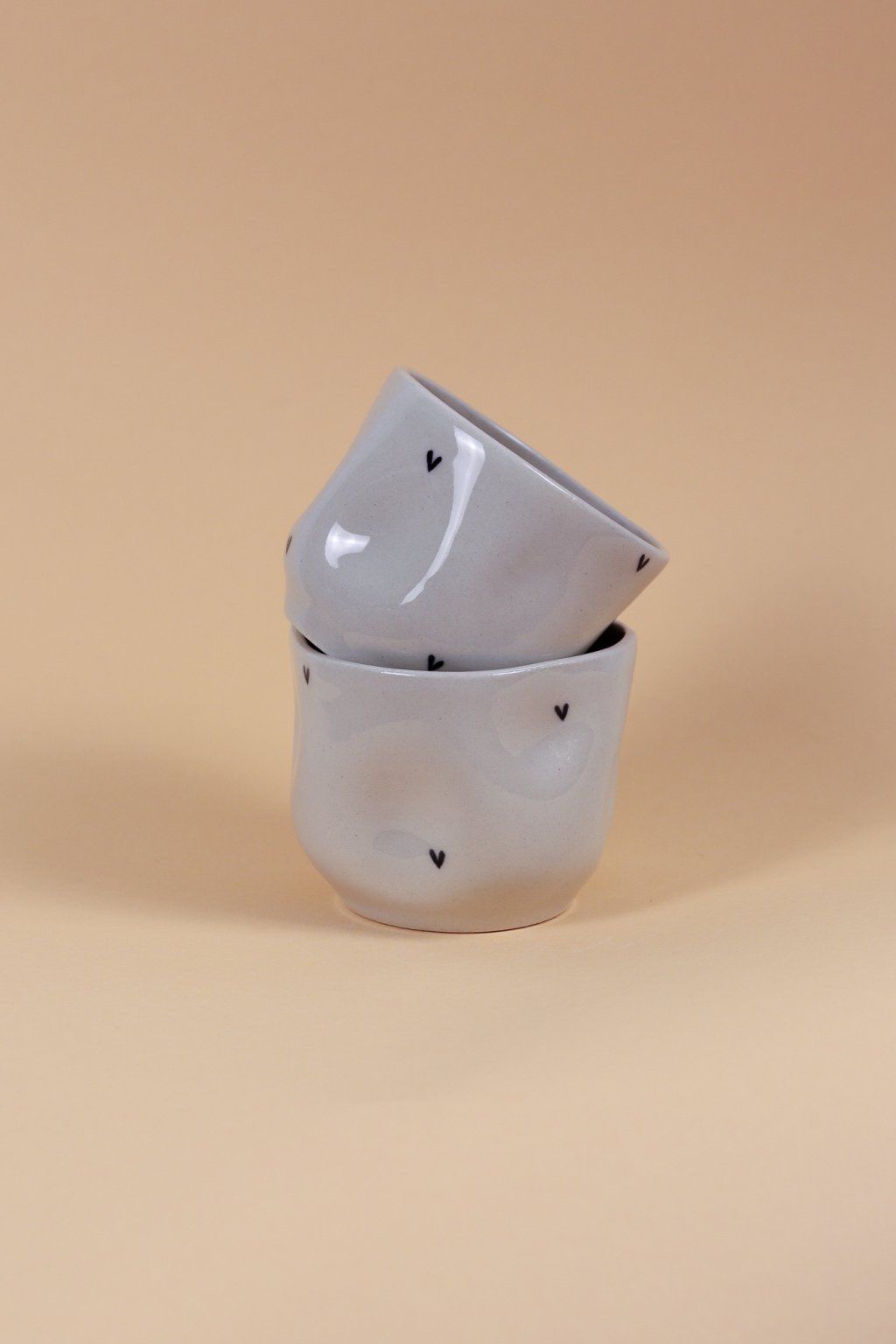Kalíšek s černými srdíčky béžový zůžený