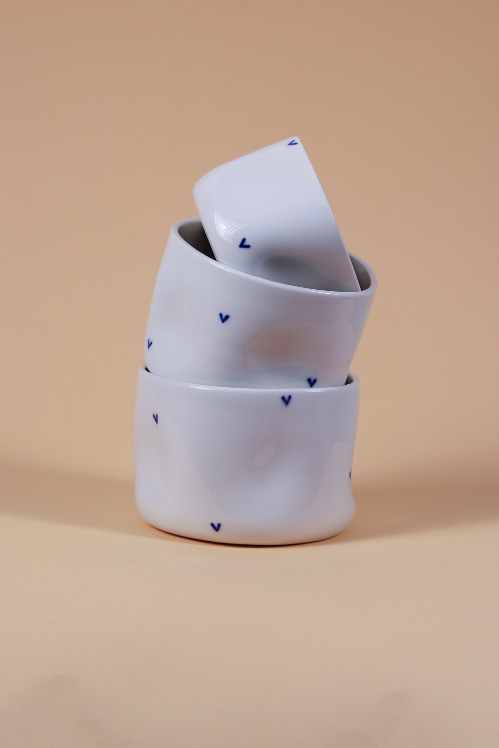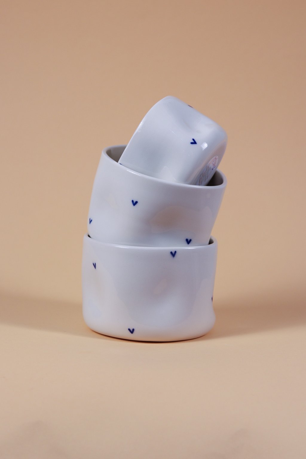 Kalíšek s modrými srdíčky poloporcelán