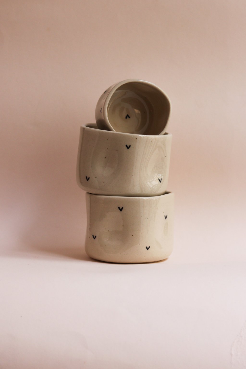 Kalíšek je vyrobený z béžové hlíny s jemným žiháním.