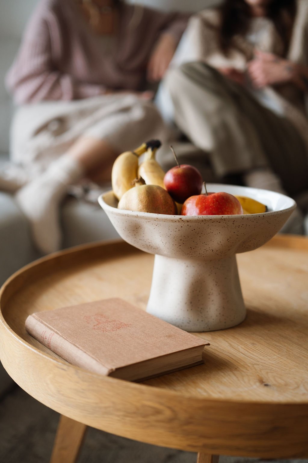 Tečkatá pomačkaná miska na ovoce, která dotvoří váš interiér.