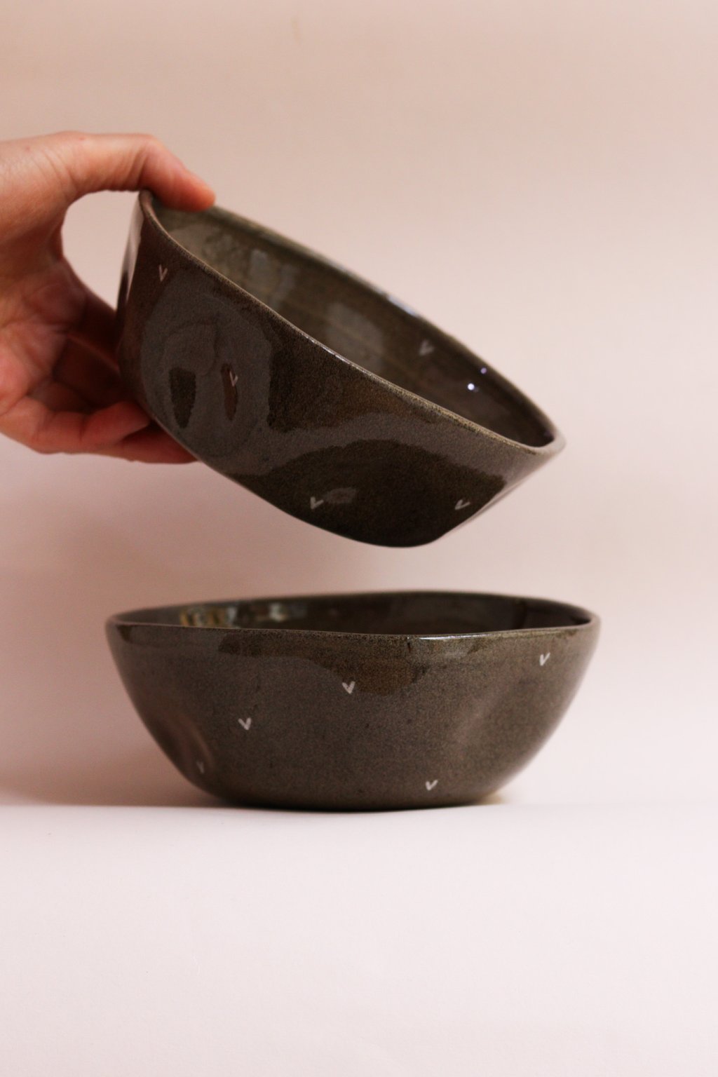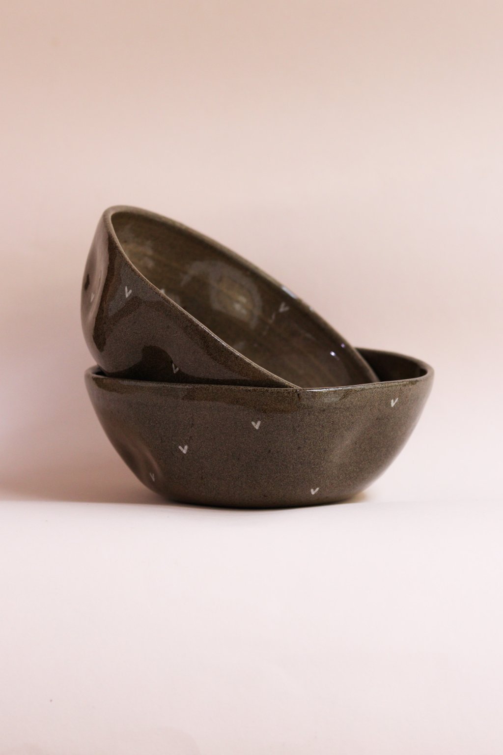 Miska tmavá s bílými srdíčky celoglazovaná malá
