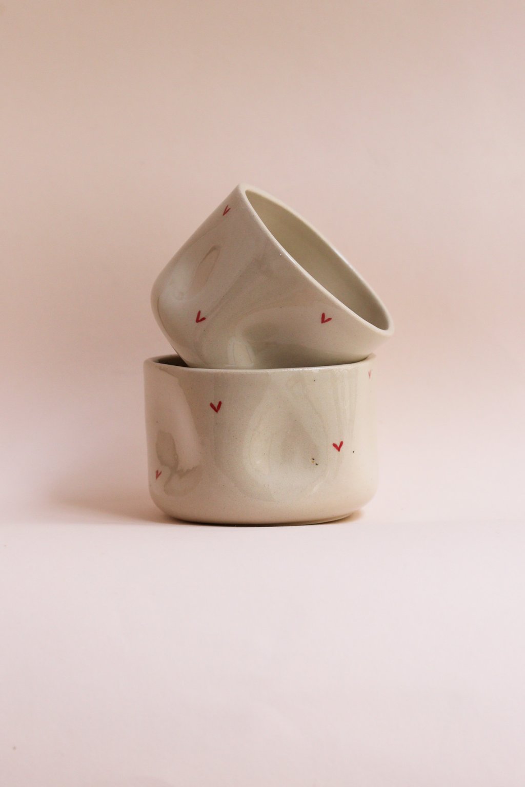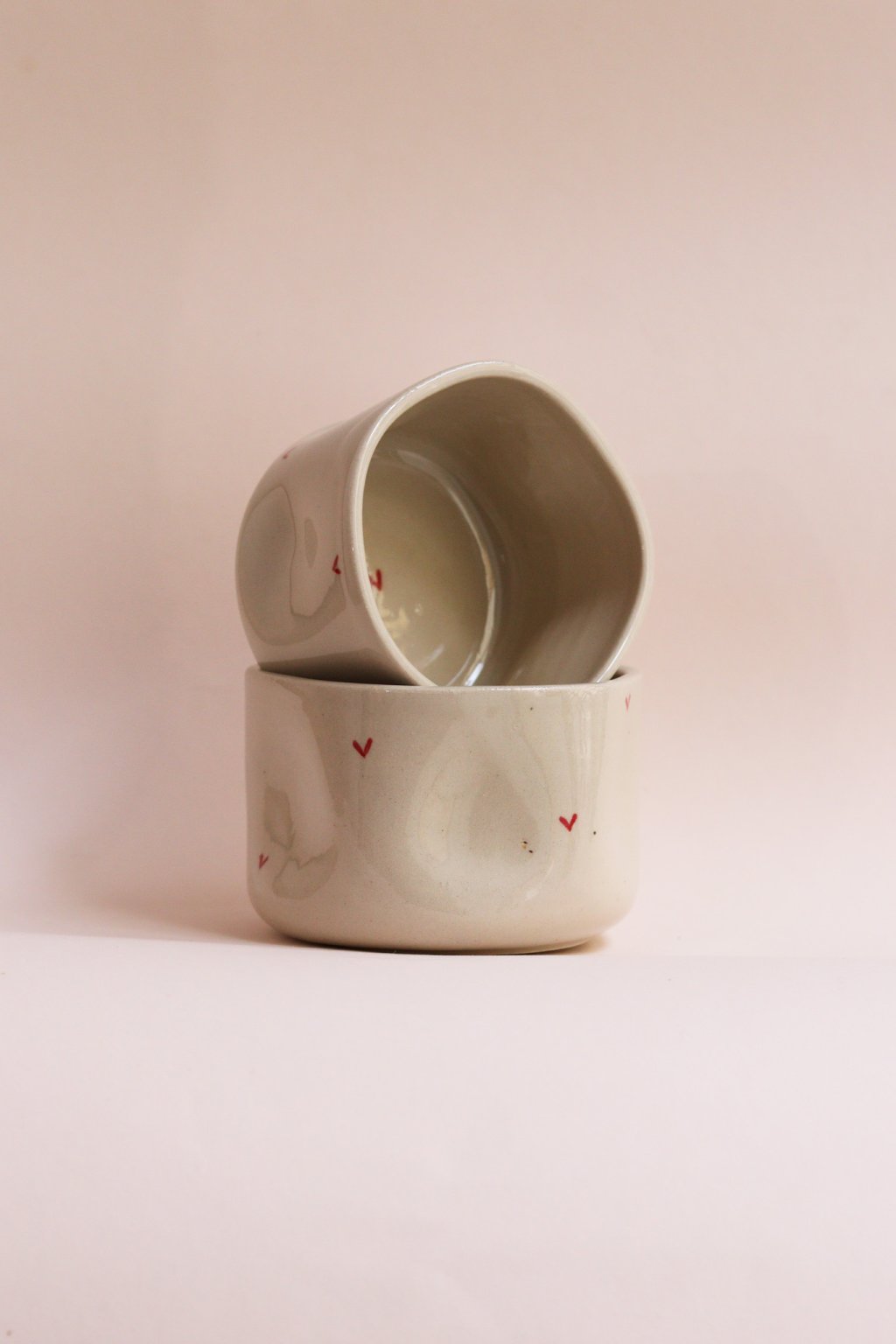Kalíšek s červenými srdíčky béžový