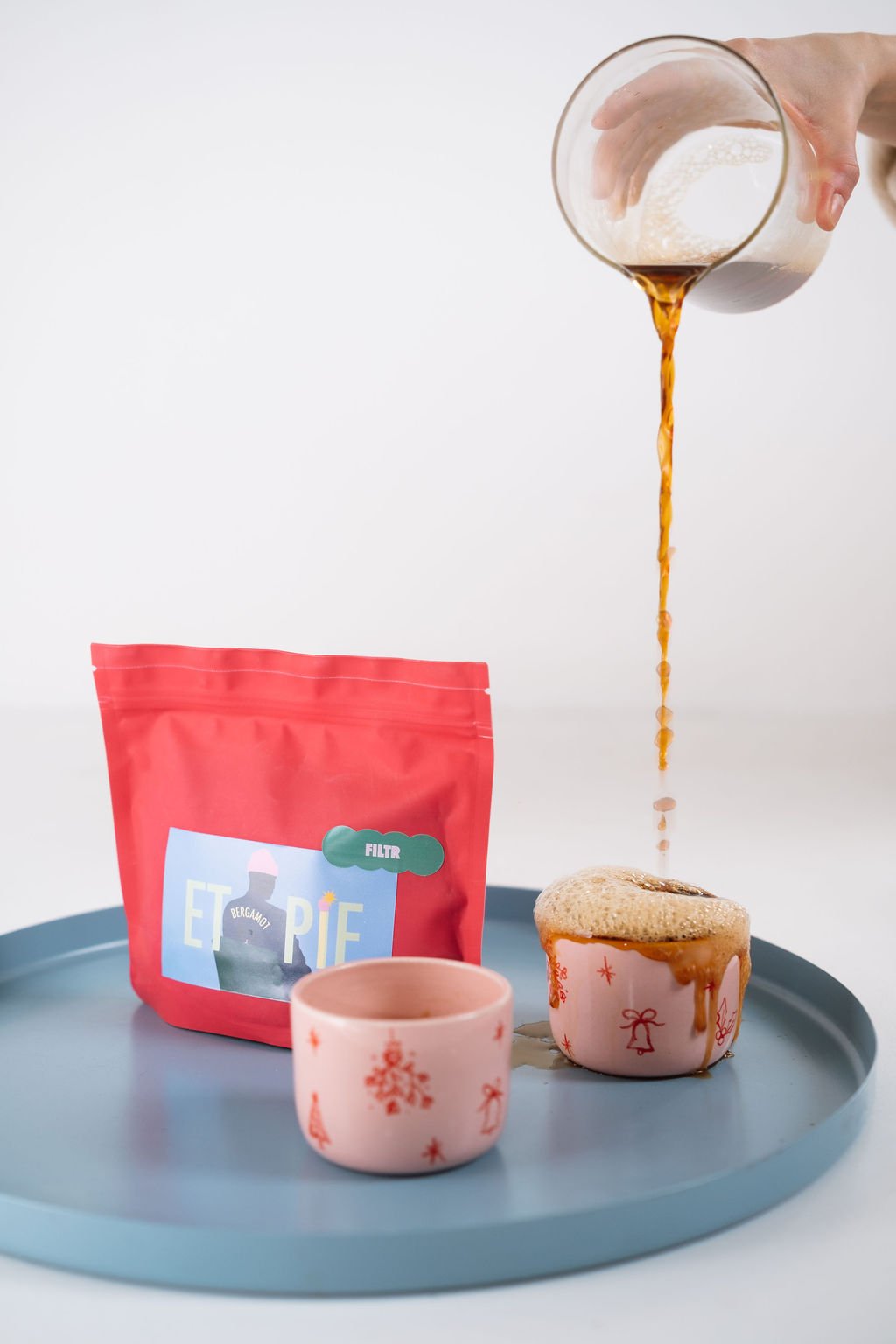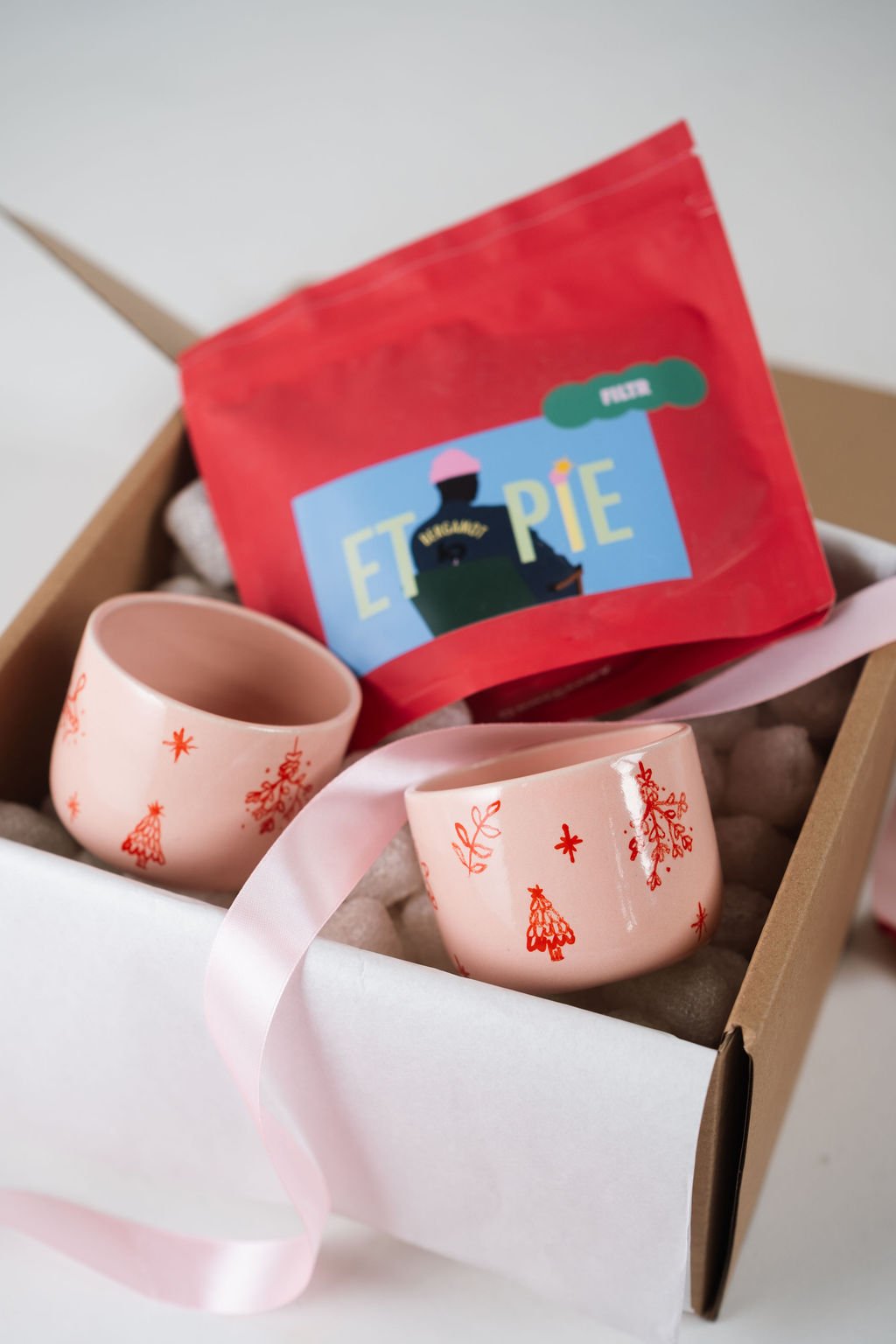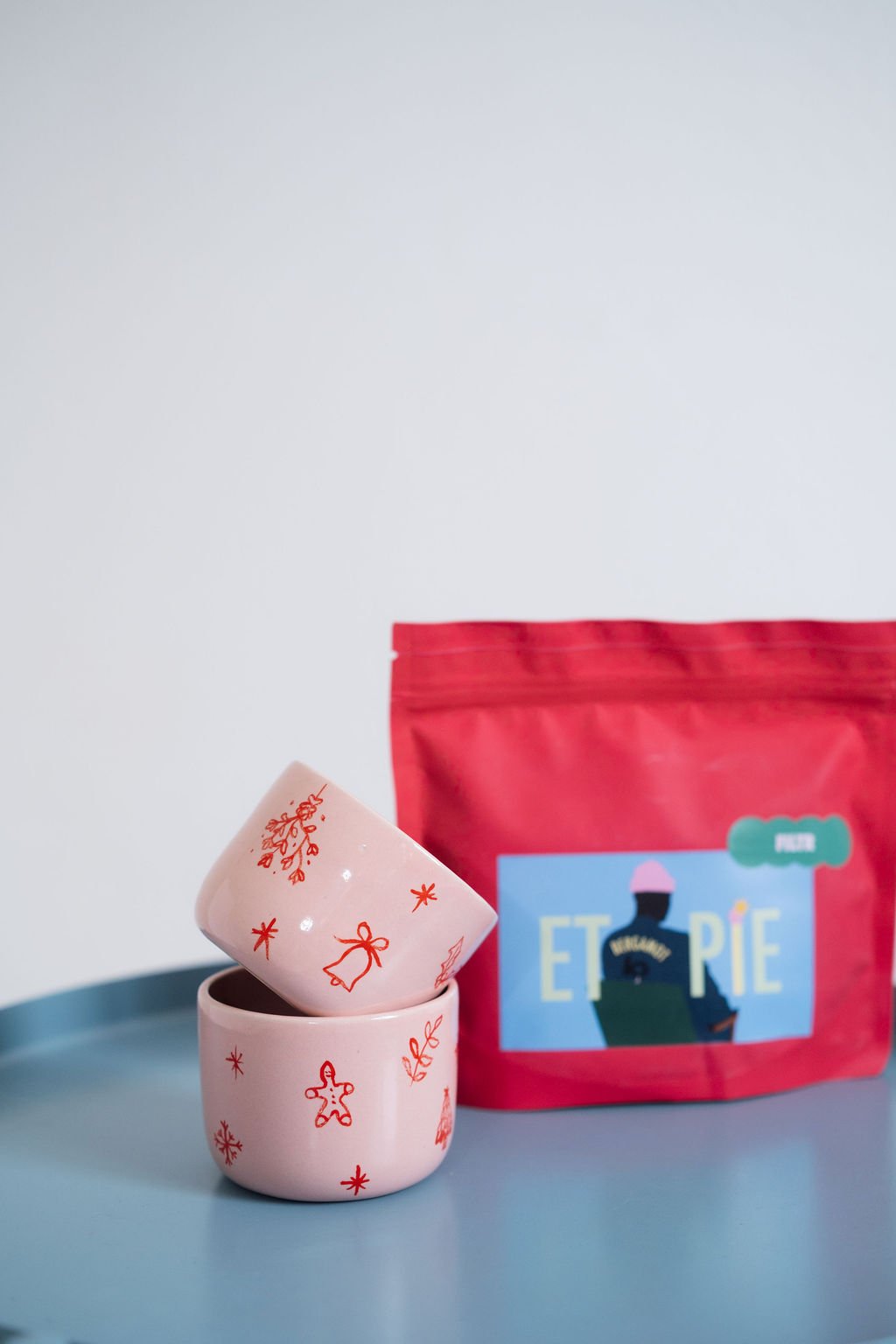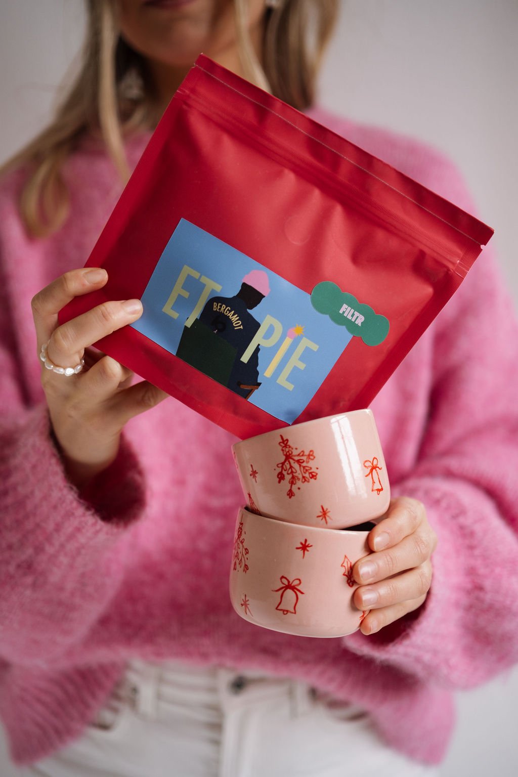 Ručně kreslené vánoční kalíšky v balíčku s vyváženou kávou plnou svěžesti a sladkosti. Tomu říkáme sváteční edice.