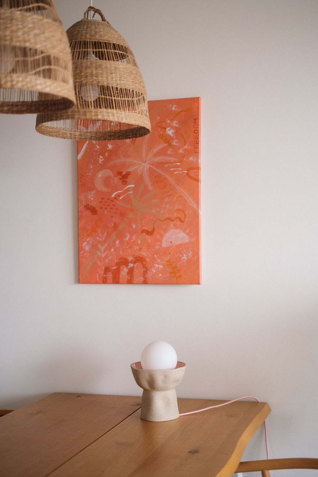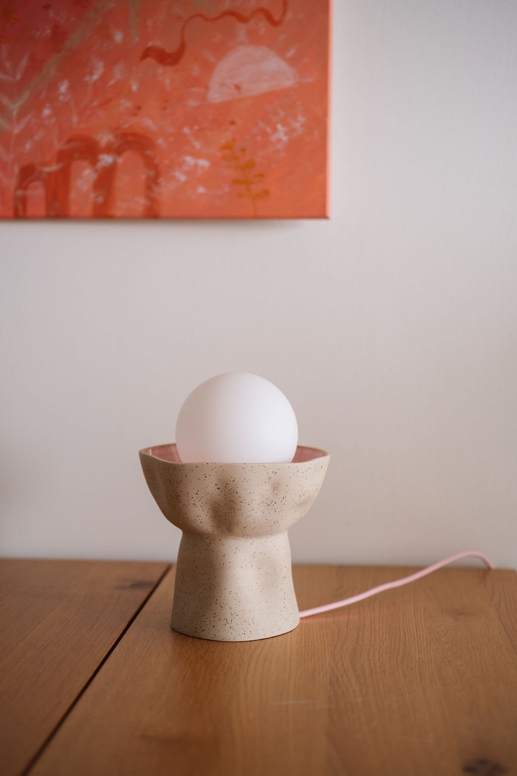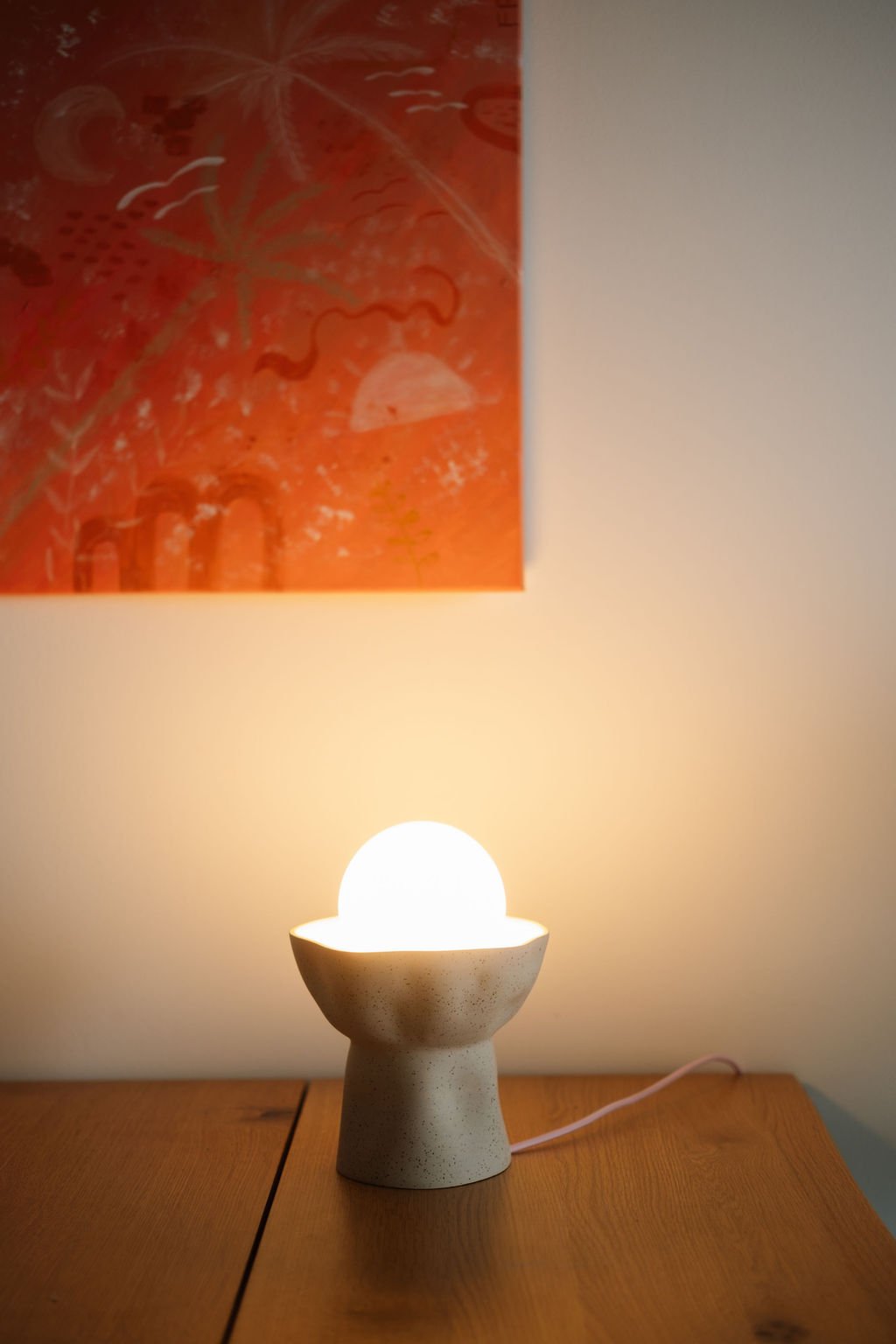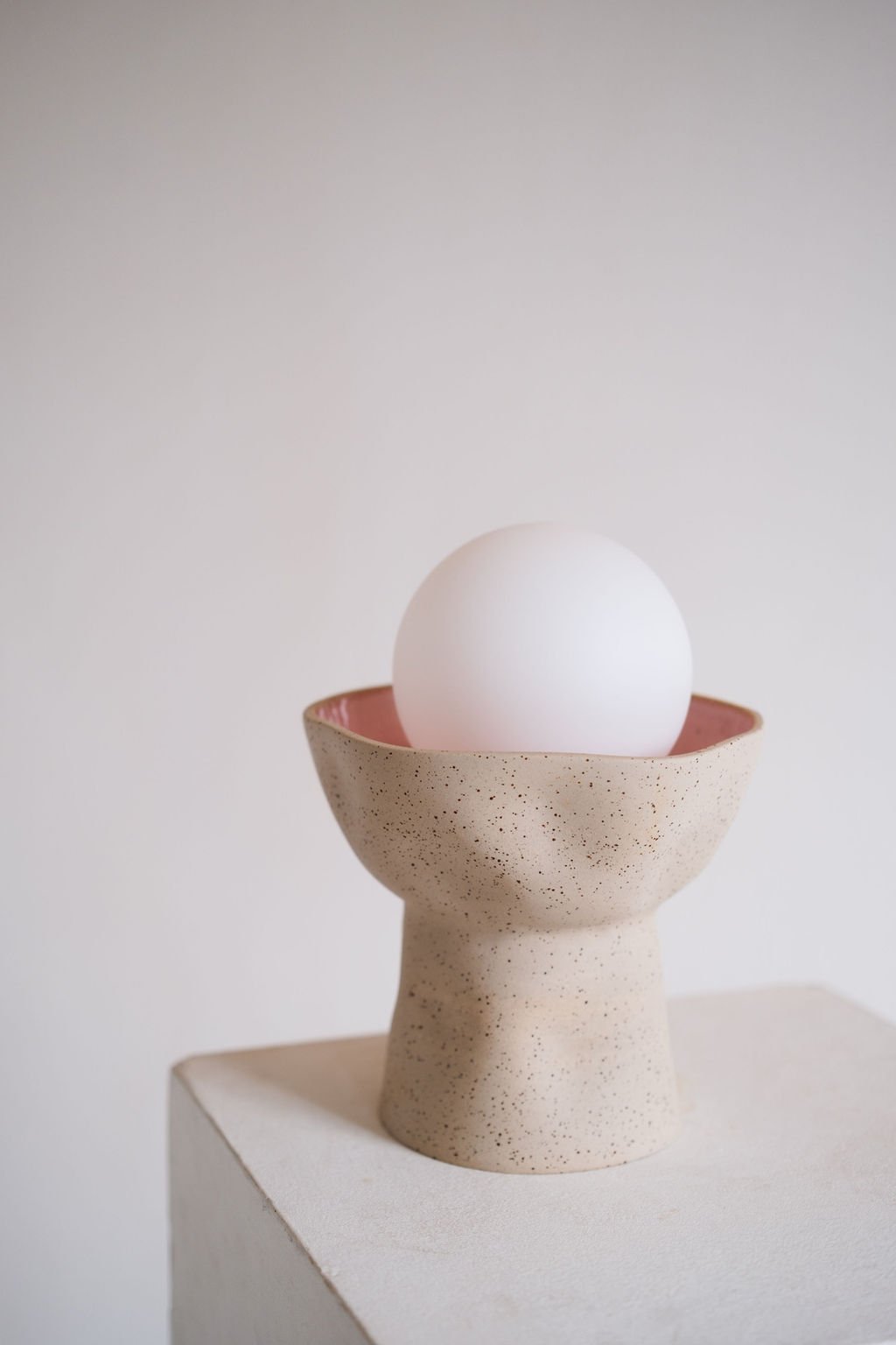 Její jemné teplé světlo se decentně rozprostře po místnosti a naladí vás na pohodu. Matná kulatá žárovka a tečkatá keramika pouze s vnitřní růžovou glazurou působí elegantně a přitom hravě.